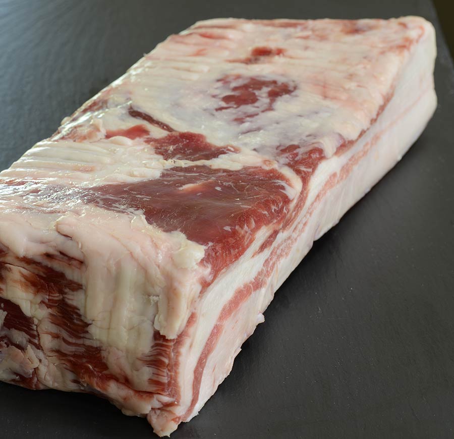 A:Yes, the Iberico Pork Belly, Skin On comes as whole piece (slab).