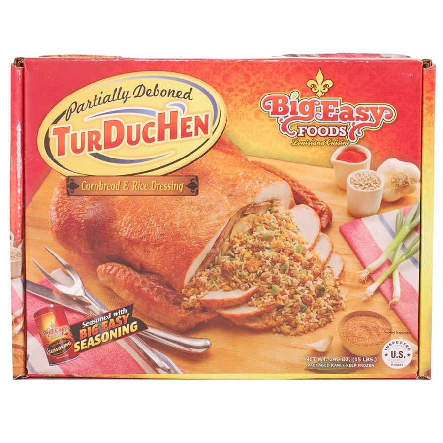 This particular “bird” is partially deboned comes with a flavorful pork and sausage Jambalaya, seasoned with a special blend of Big Easy spices. Just cook like a regular turkey come Thanksgiving.